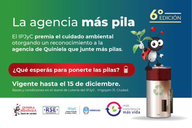 El Instituto Provincial de Juegos y Casinos a través de la Gerencia de Responsabilidad Social y junto a la Gerencia de Lotería da inicio a la 6ta vuelta de “La agencia más pila”. La acción invita a todas las agencias de Quiniela de la Provincia de Mendoza a recolectar pilas usadas. El objetivo es reducir…