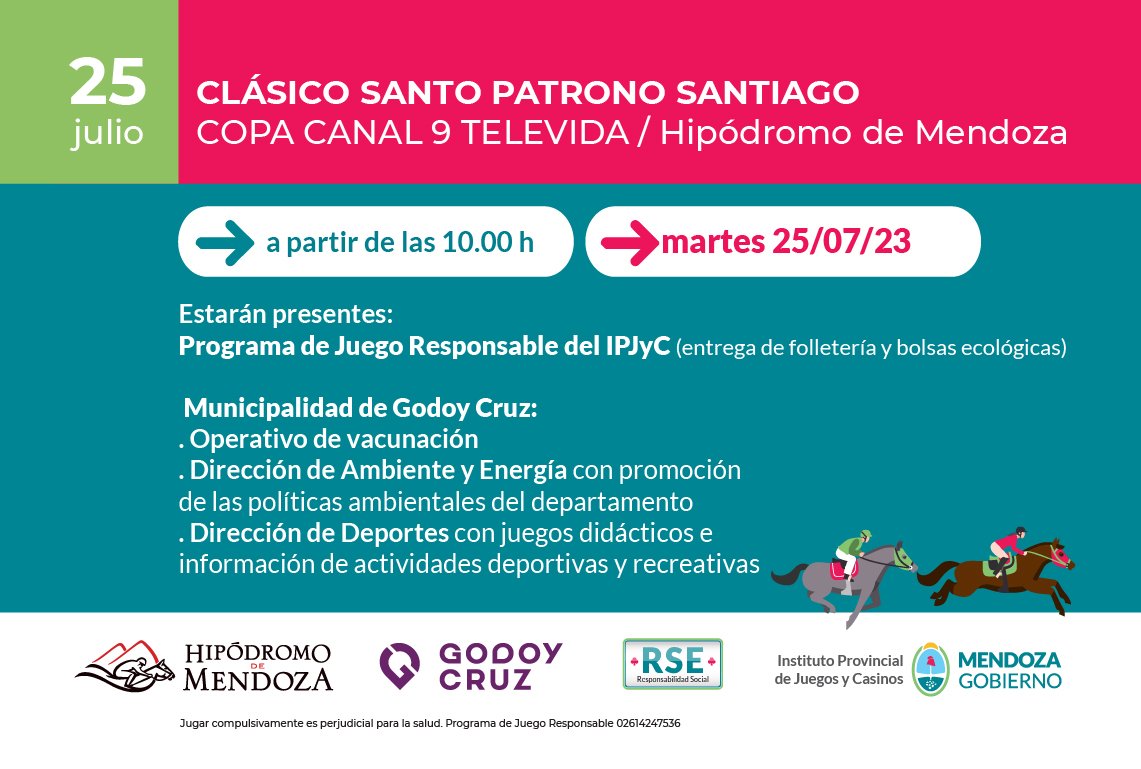 El martes 25 de julio se disputará el Clásico Patrono Santiago Copa Canal 9 Televida, en el Hipódromo de Mendoza.