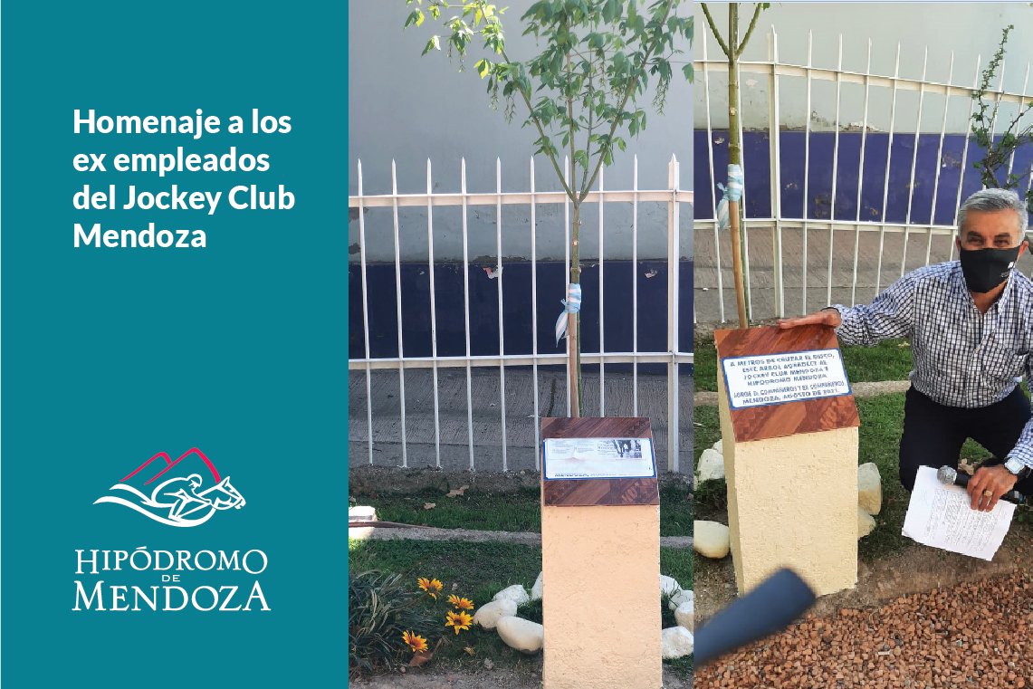 El pasado domingo 19 de septiembre durante la tradicional jornada hípica mendocina el personal del Hipódromo por iniciativa del Sr. Jorge Dominguez, rindió homenaje a los ex empleados del Jockey Club Mendoza ya retirados y a los actualmente en función, a través del recordatorio con una placa conmemorativa en un árbol plantado por el Departamento Responsabilidad Social en las inmediaciones administrativas del predio.